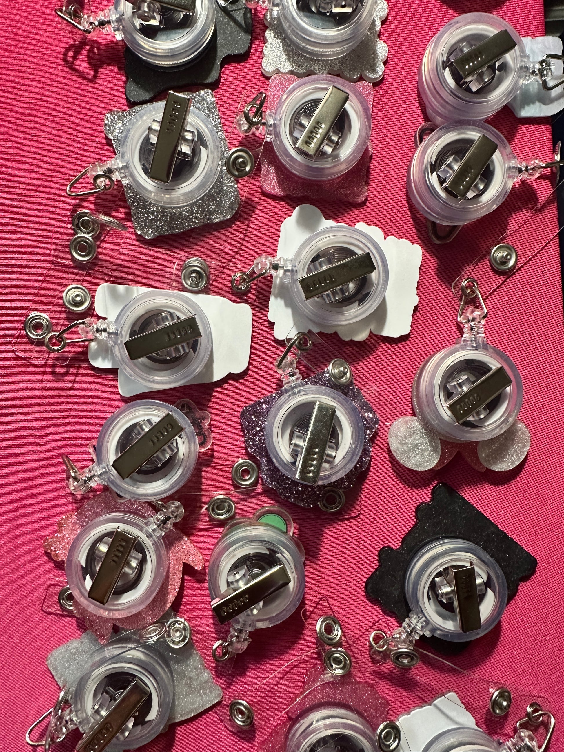 These cute acrylic badge holders help you show off your style. Each one has a clip on the back to attach to your clothing comfortably. Choose the style that you love!