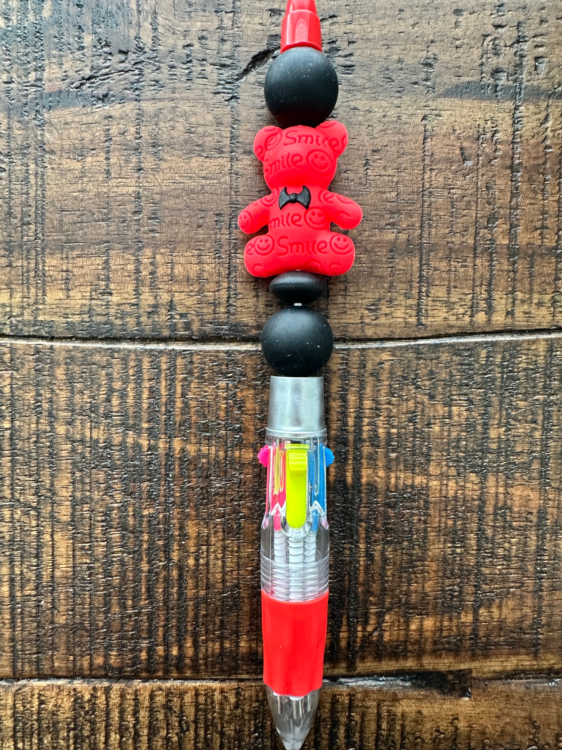 Enjoy this handmade item in the beautiful color of your choice with the base colors in all colors of the rainbow. Each pen has four ink colors all wrapped into one pen. The ink colors are blue, green, pink, and black. Each beaded pen is handmade with love and packaged ready to send to you. Options will vary based on availability and my inspiration!